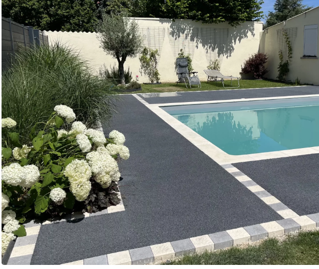 La résine gomme est un revêtement extérieur souple et drainant, idéal pour les terrasses, plages de piscine ou allées.
